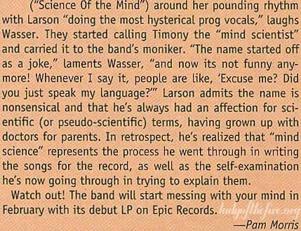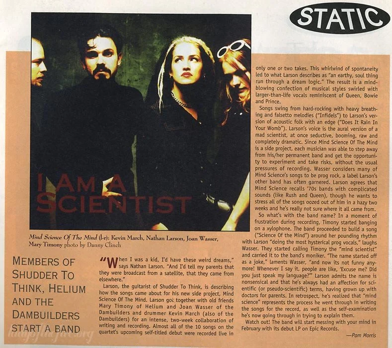 From Magnet Magazine No.21, Dec/Jan '96, from the feature "Members of Shudder to Think, Helium, and the Dambuilders Start a Band"